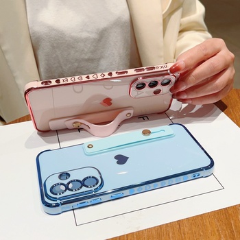새로운 트렌드 럭셔리 디자인 전기도금 측면 사랑 하트 소프트 TPU 충격 방지 스트립 스탠드 전화 케이스 커버 삼성 A36 A56